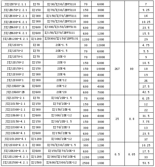 JZJ2B系列羅茨水(液)環(huán)真空機(jī)組技術(shù)指標(biāo):